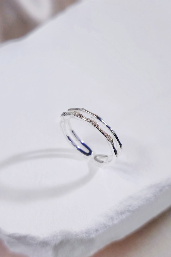 Silver adjustable ring with zircon